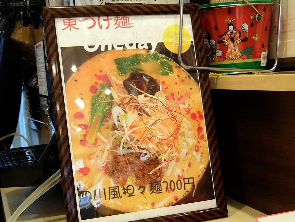 メニュー豊富でだいぶ迷いますが、オーダーは旨そうな画像に惹かれた「四川坦々麺」にしました。プラス80円でチャーシュー丼が付きますが、2杯目なので自粛^^;
