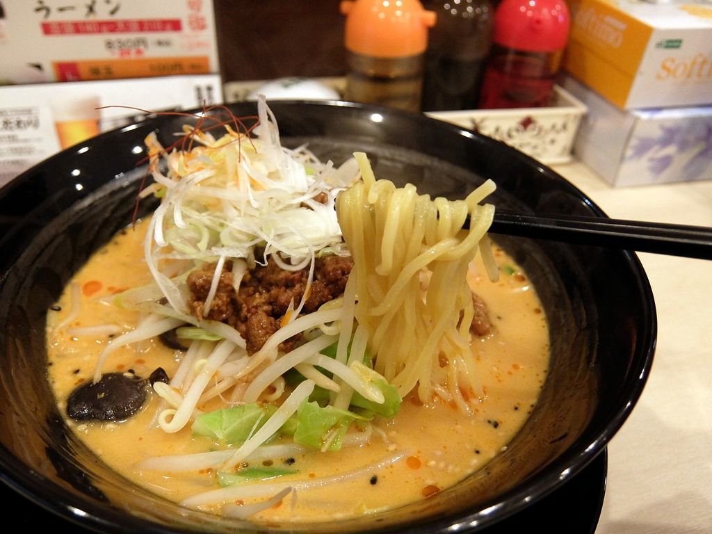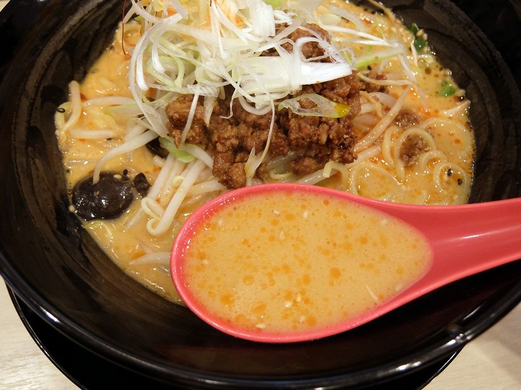 スープは、さらりとした担々ごま風味。 さらさらスープですが、ごまがしっかりと効いてまったりとしたコクがあります。
