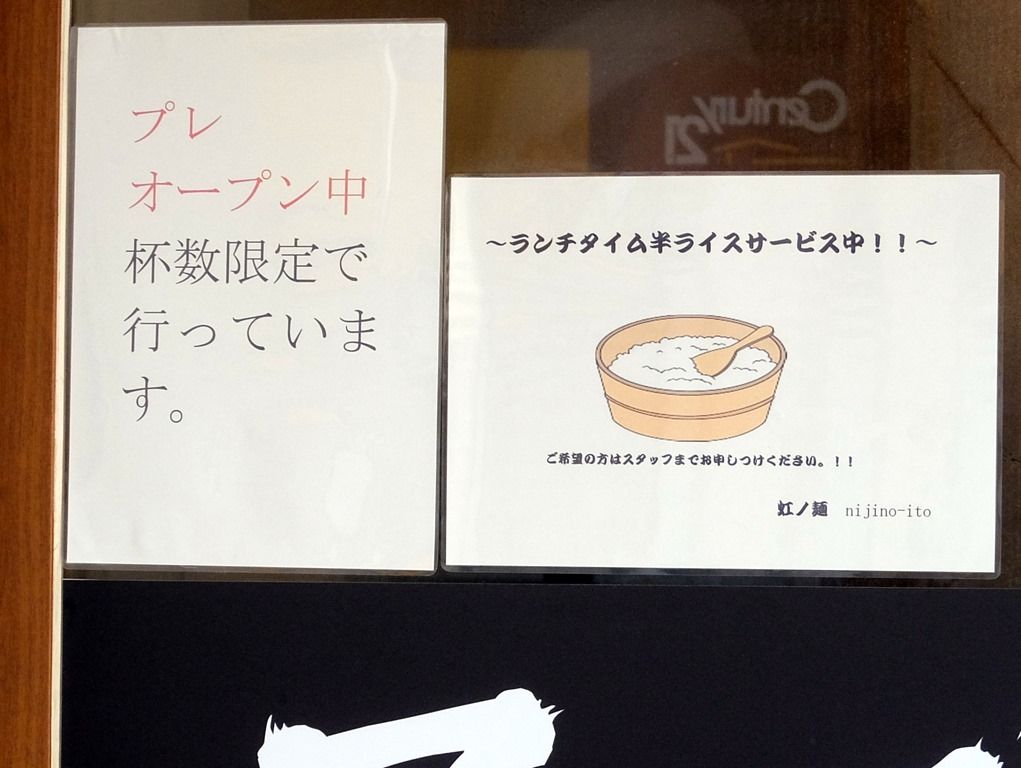 2015年12月27日頃プレオープンスタート。2016年1月5日オープン。小山にある燕三条系インスパイアの人気店「ラーメン 虹の麺(いと)」の系列店。本店は休業中みたいなので移転か確認したところ、移転ではないそうです。
