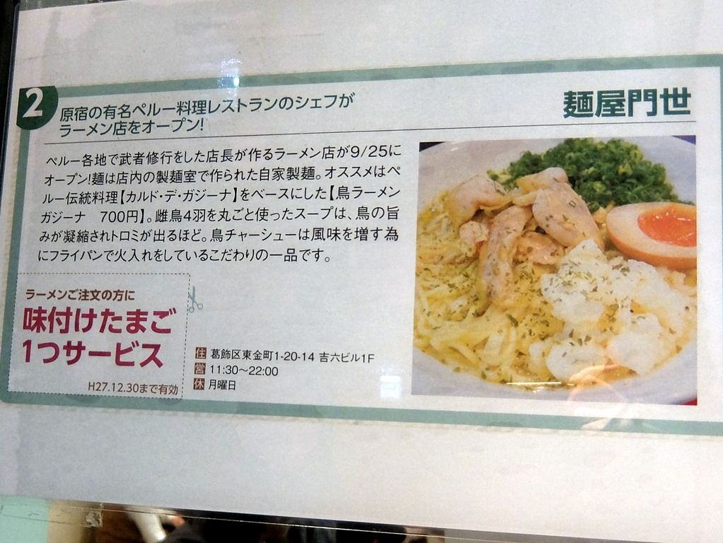 2015年12月18日、金町の新店「麺屋 門世」へ。
