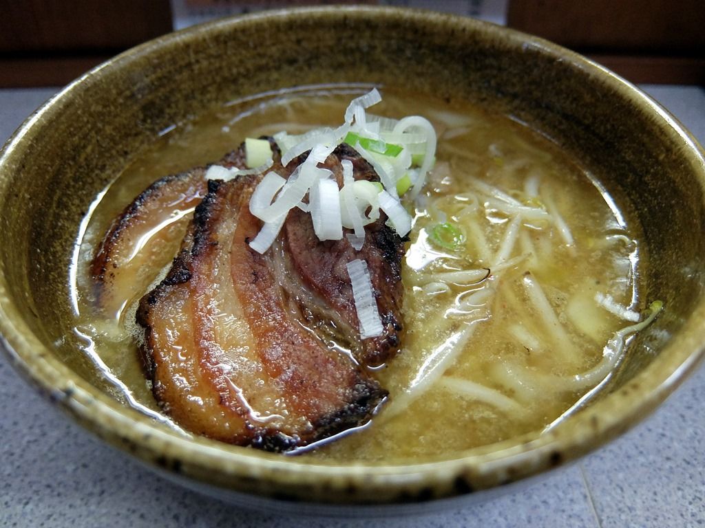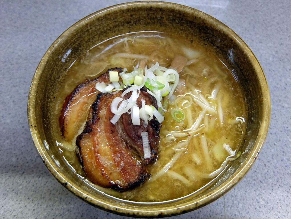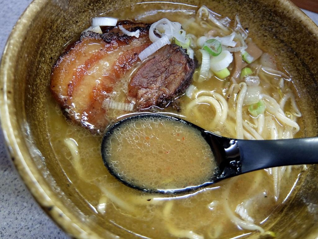 スープは、表面に分厚いラードの膜が張ったヤケド注意の超アツアツの味噌味。 店主さんはすみれ出身らしいですが、すみれよりは少しベクトルの異なる、味噌を主軸としたワイルドでガッツリとした味わい。