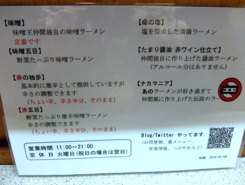 2016年1月9日仏滅、行徳の新店「味噌王 仲間 SNBWorld」へ。