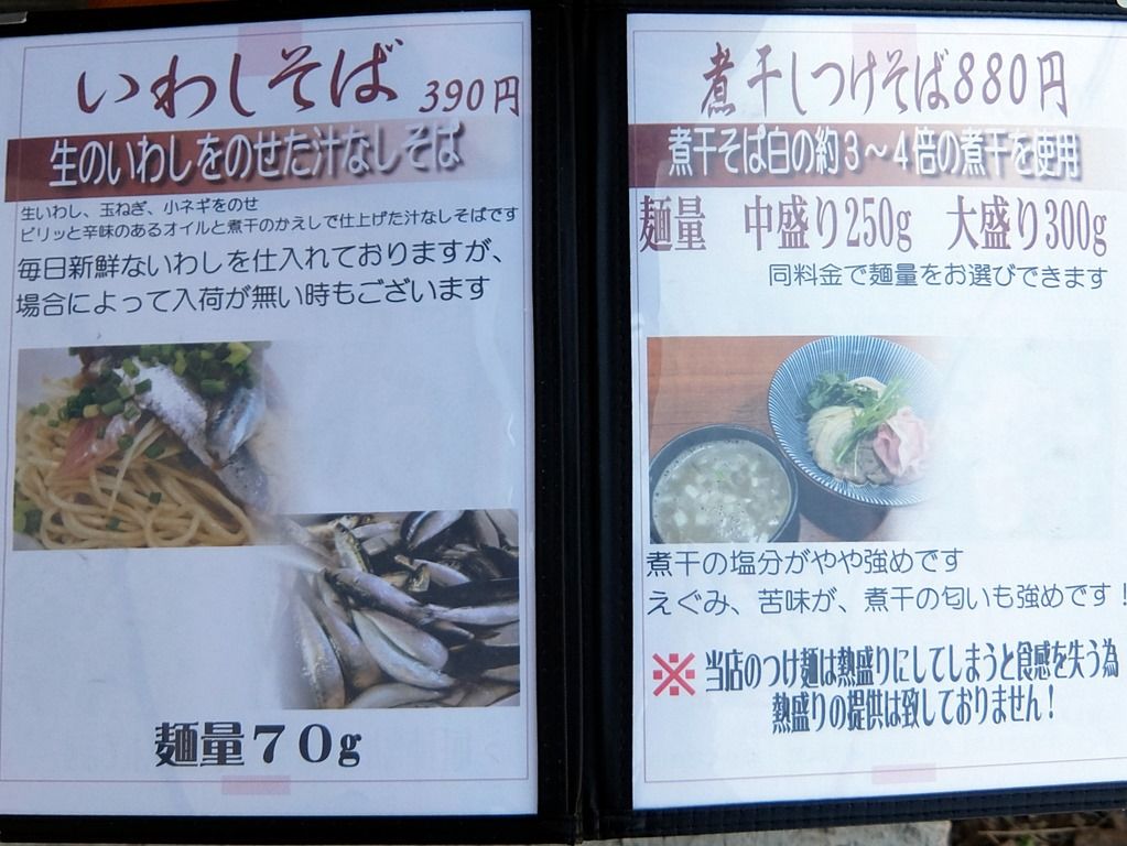 6~7ページ目、いわしそば・煮干しつけそば。