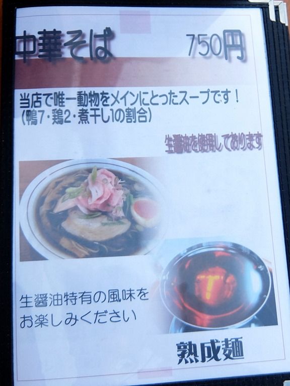 画像は、店外エントランスにあったメニューブック。1ページ目は中華そば。 2~3ページ目、煮干そば。