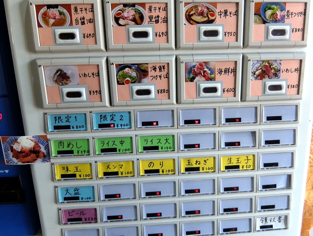 オーダーは、同行者が「煮干つけそば」をポチったので、私は「煮干そば白醤油」と「海鮮丼」w