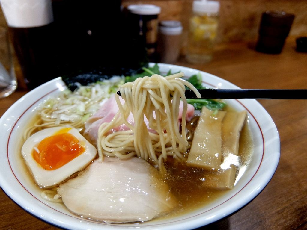 スープは、さらりとした清湯醤油味。 4種の煮干しで摂った出汁に、白醤油のカエシでほのかに醤油を効かせて、煮干しの香りを最大限に楽しめるスペック。
