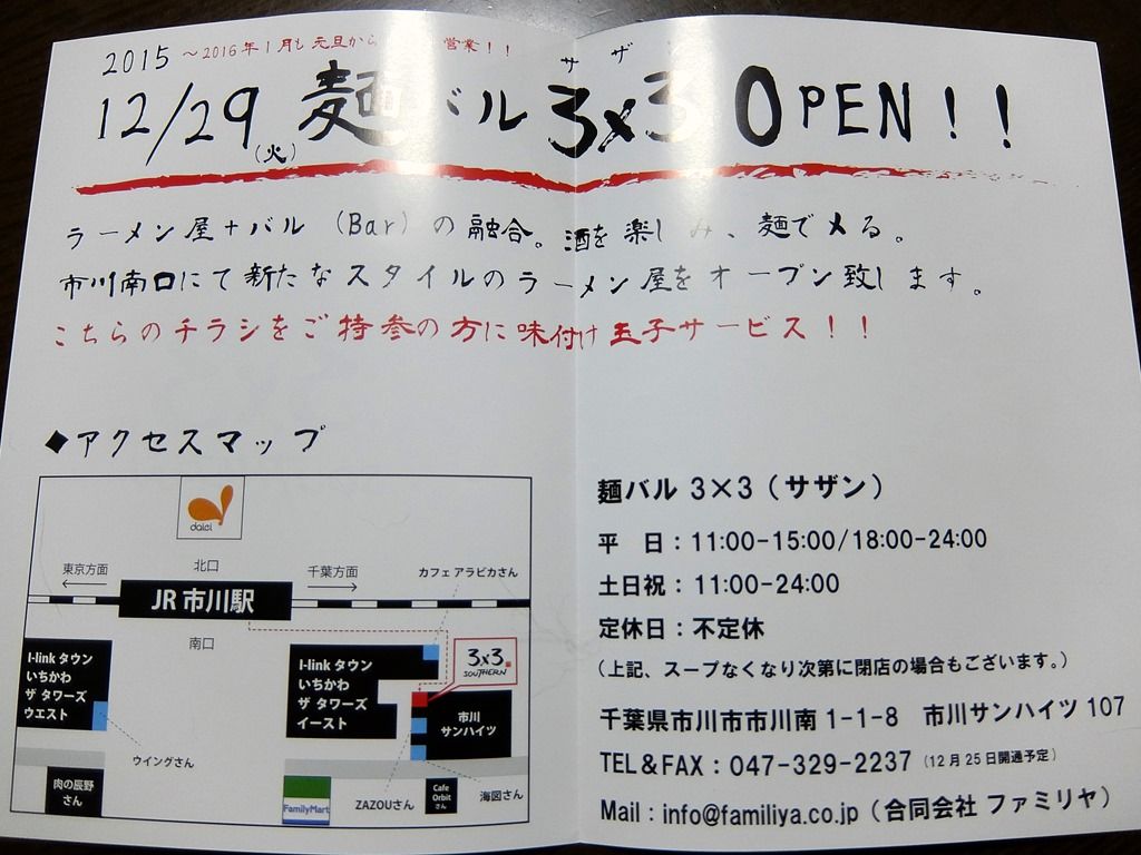 2016年1月9日、市川の新店「麺バル 3x3(サザン)」へ。