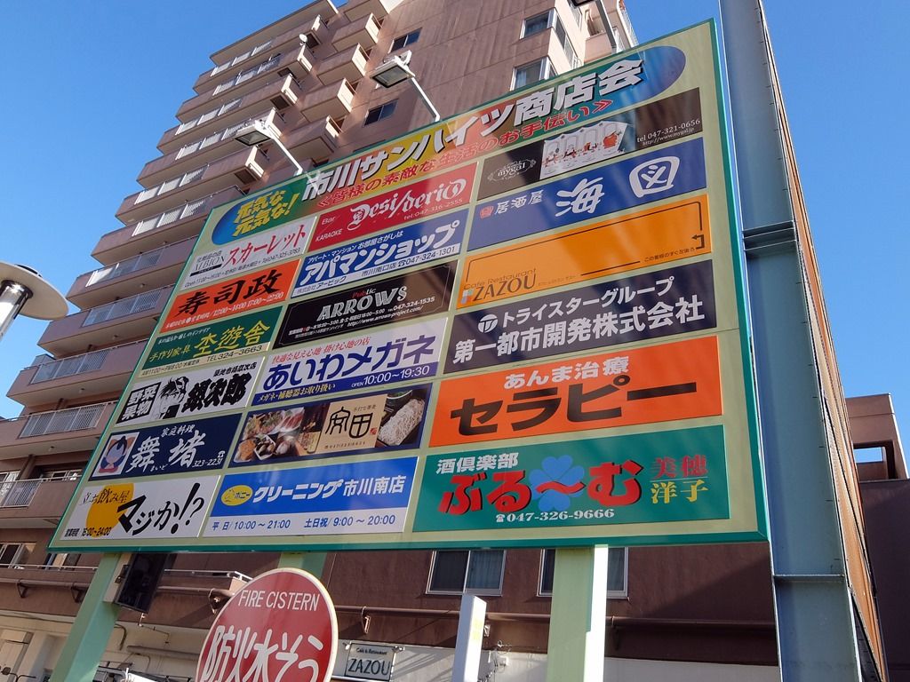 店の場所は、市川駅南口徒歩約3分。あけどやの真向かいのビル「市川サンハイツ商店会」内。