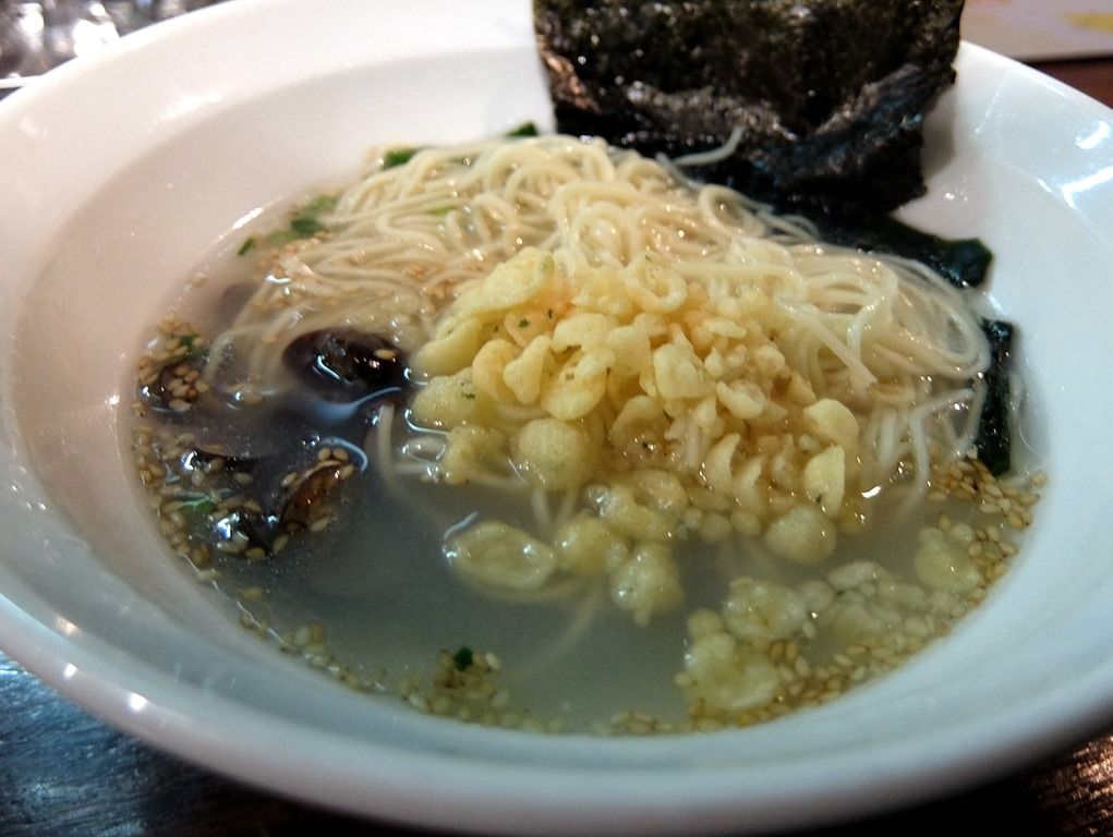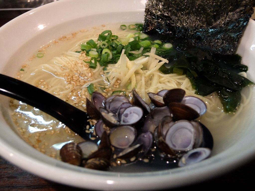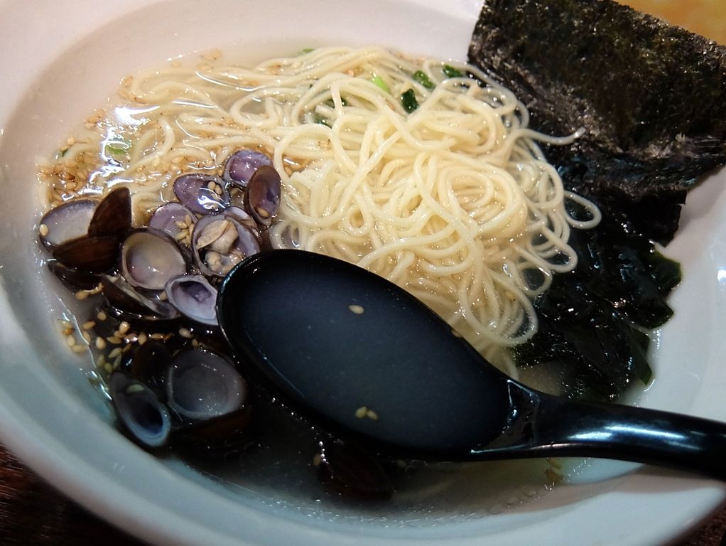スープは、さらさらの清湯塩味。 香味油をを浮かべてコクを補強してるようですが、ほぼピュアなしじみ出汁。