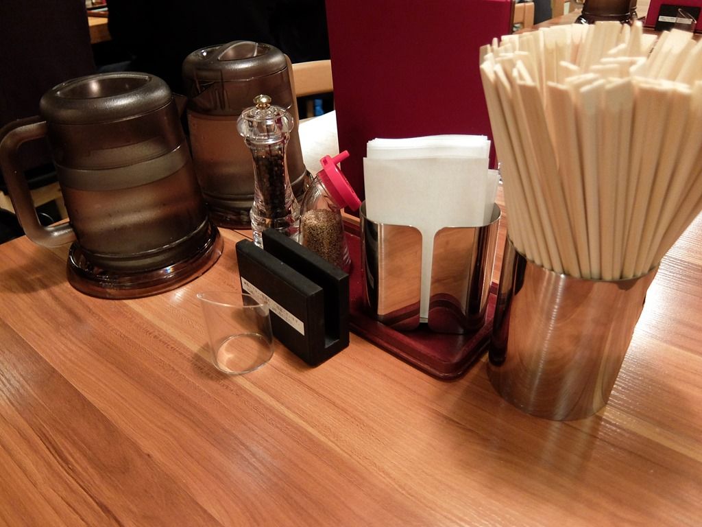 スタッフは全員男性で7名。 BGMは、イージーリスニング的な。箸は割り箸。