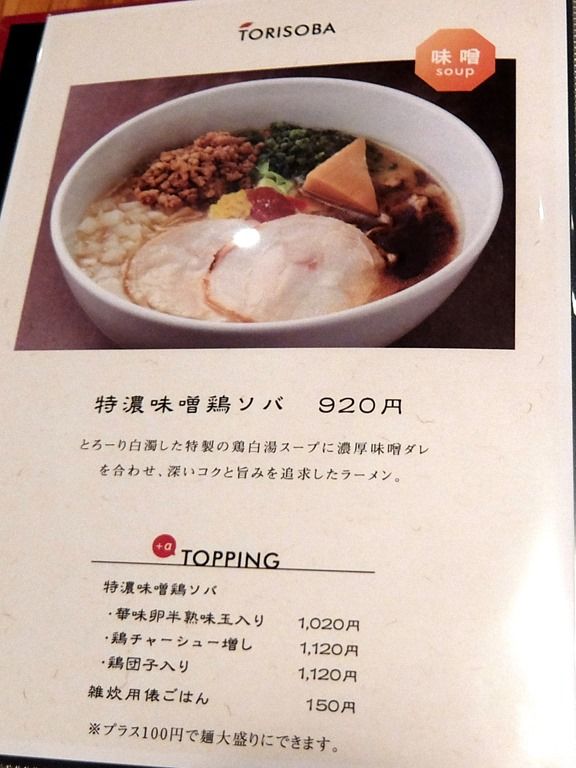 4ページ目、特濃味噌鶏ソバ920円、