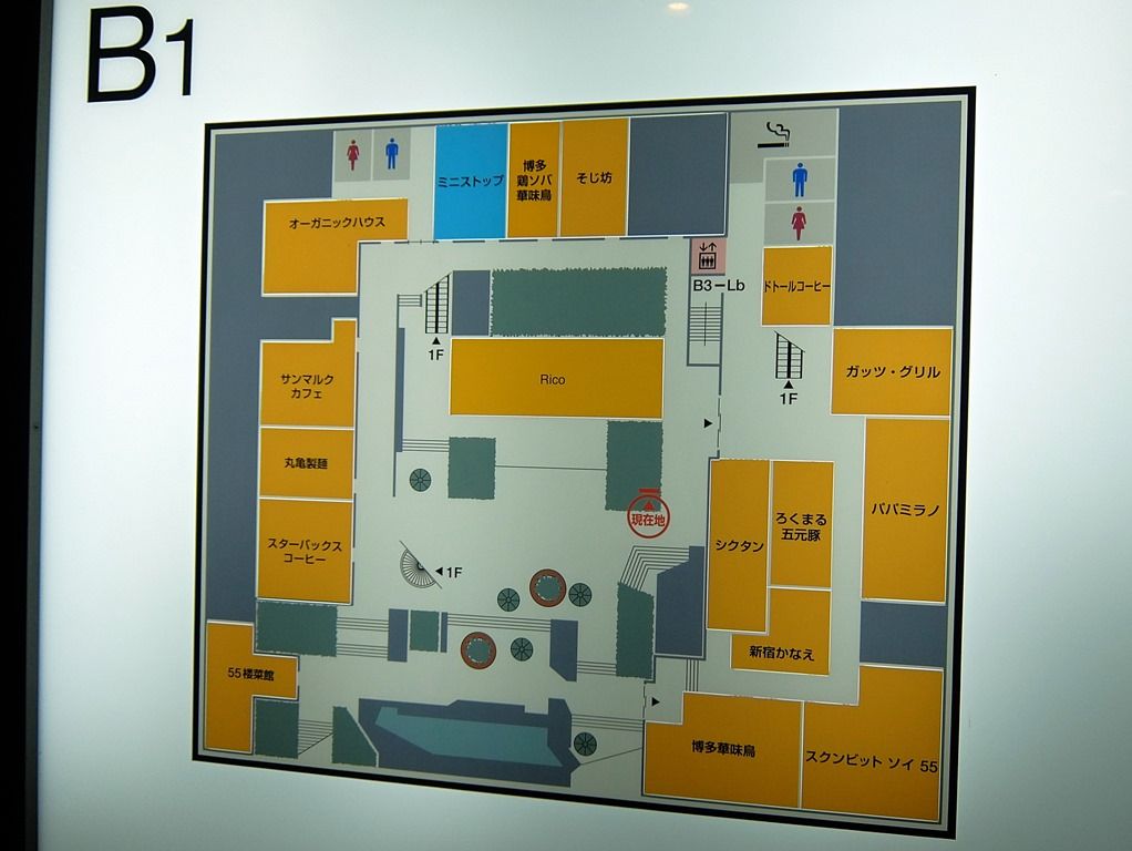 画像の地図では「博多 華味鳥」が手前右で、「鶏ソバ」が、奥中央。 「博多 華味鳥」はビル内のテナントに対して、「鶏ソバ」は外に面した路麺店^^;