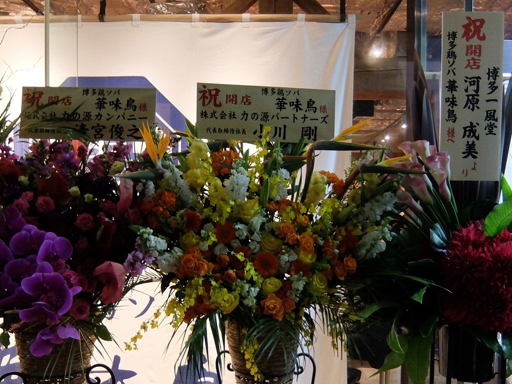 店頭開店祝い花の内の3基は、一風堂から。