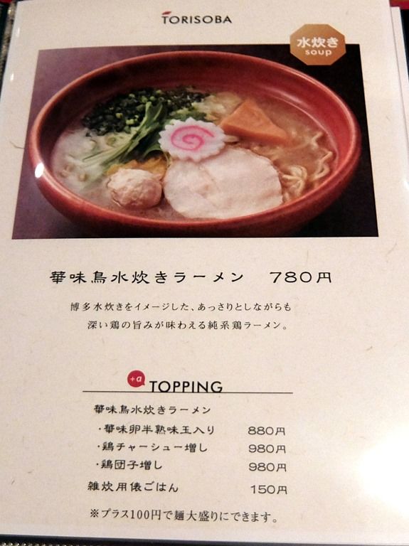 3ページ目、華味鳥水炊きラーメン780円、