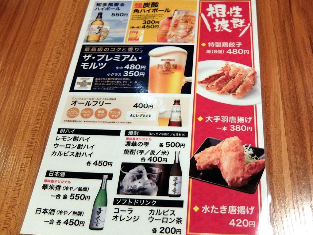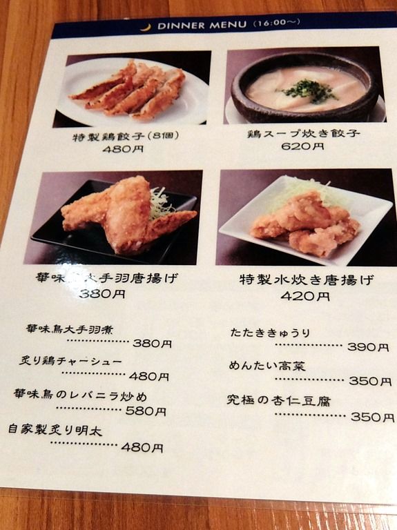 水炊き専門店のラーメンなら淡麗系と思ってましたが、「特濃味噌鶏ソバ」の写真が旨そう過ぎてそちらをチョイスf^_^;) つまみ系は、メニューブックの他に1枚ものメニューあり。