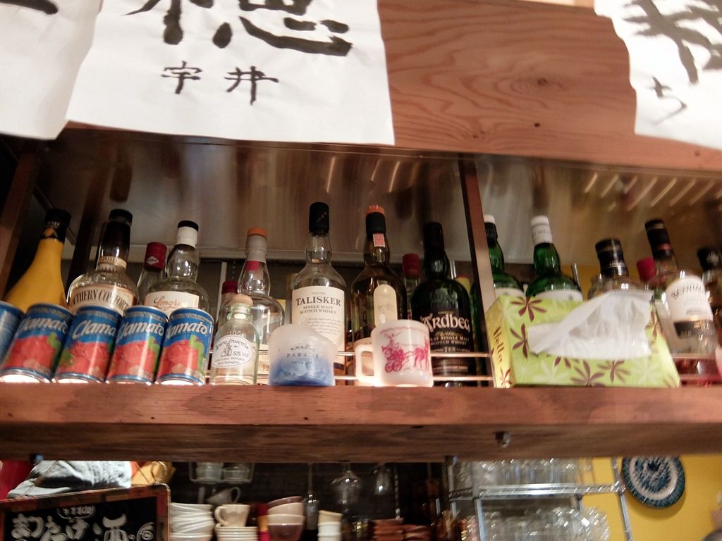 定刻ぴったり、店主さんが丁度暖簾を出してる時に到着。もちろん一番海苔~w 店内は、厨房前にバーカウンター5席。