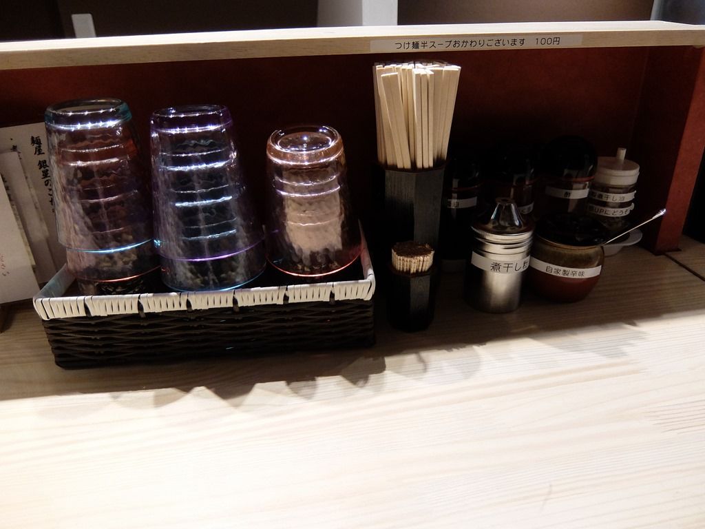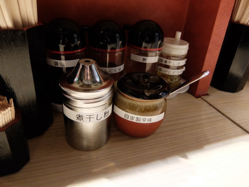 卓上調味料は、自家製煮干し油、煮干し粉、自家製辛味、自家製にんにくあぶら。