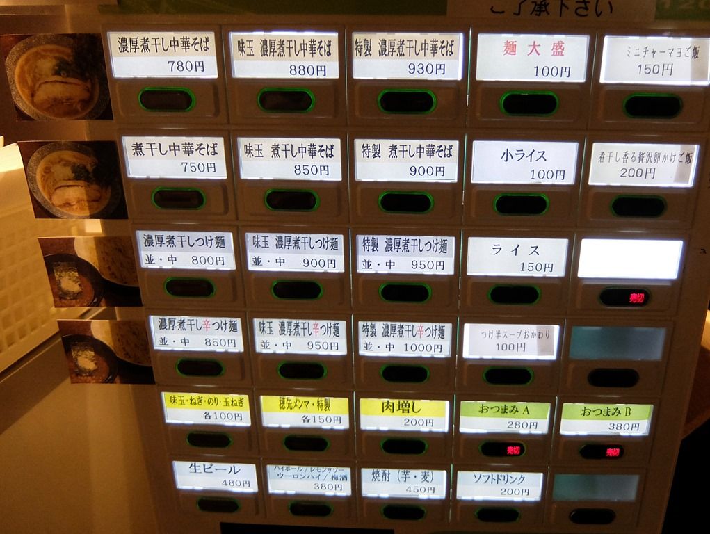 オーダーは、券売機先頭左端の「濃厚煮干し中華そば」にしました。