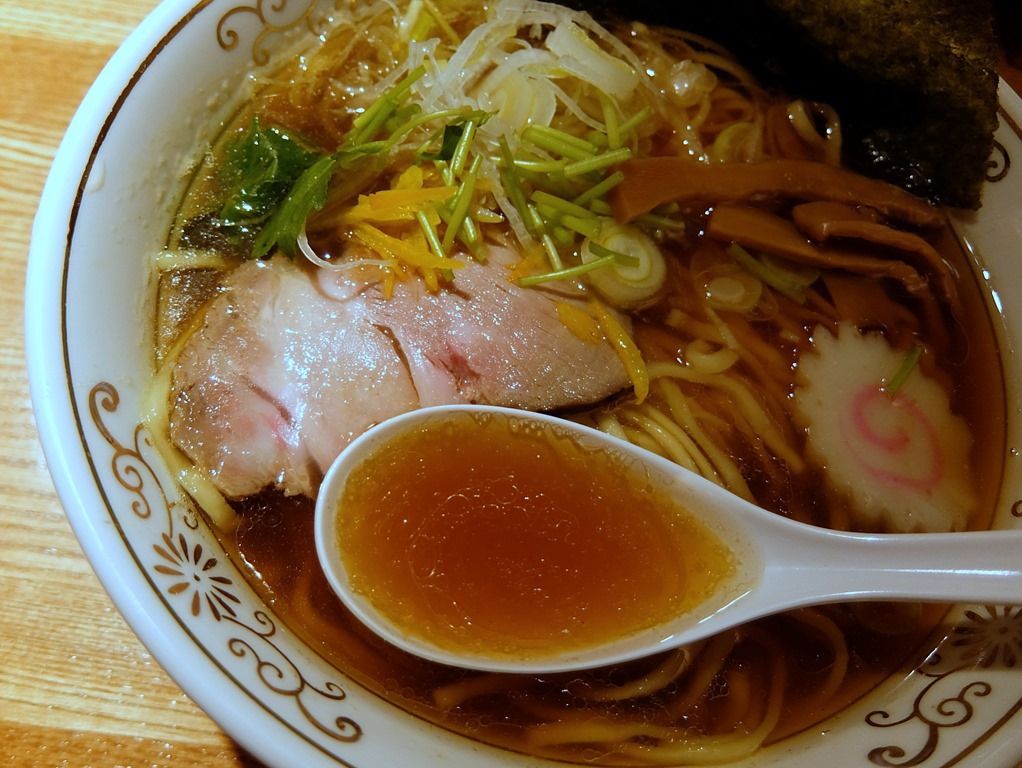 スープは、品名通りさらさらの清湯醤油味。 オープン当初、本店の「中華そば」は濃厚な豚骨魚介醤油味でしたが、今回は真逆の淡麗あっさりタイプ。