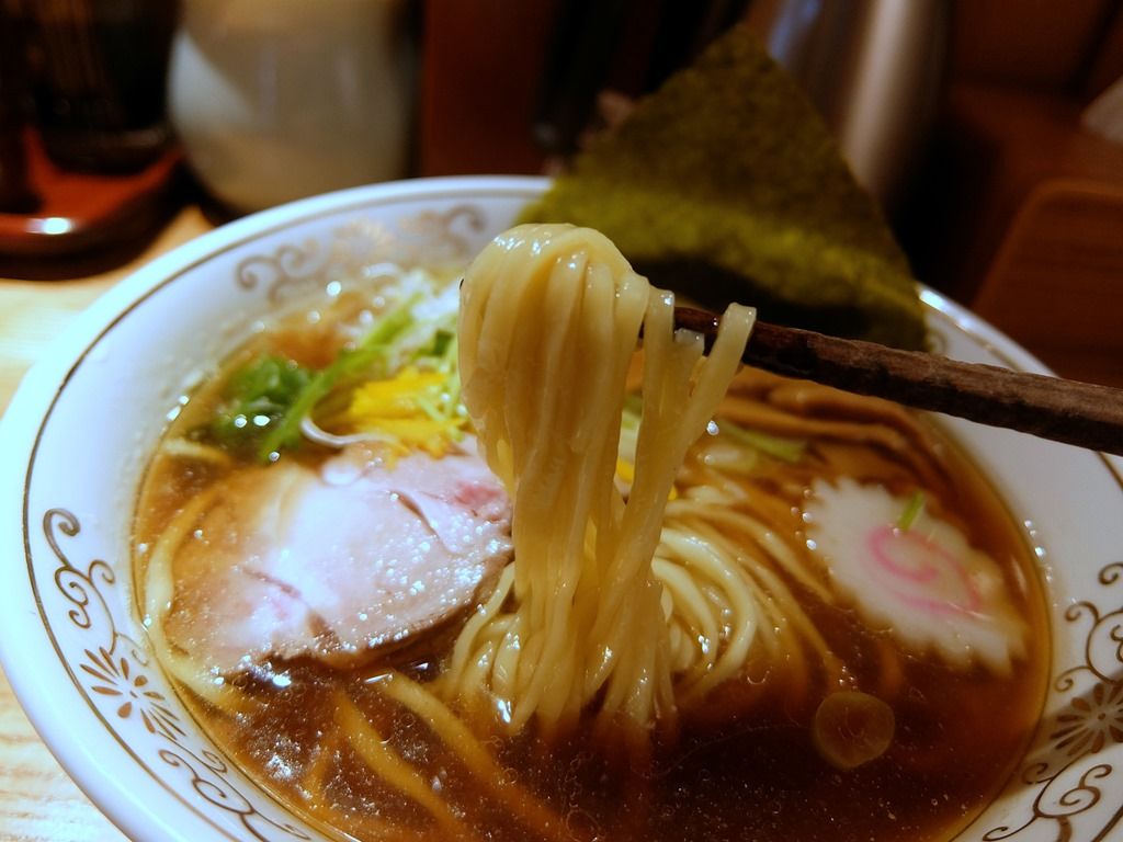 麺は、浅草開化楼の中細ストレート。 麺の個性がしっかりと出るタイプで、クリアな煮干しスープとのハーモニーが絶妙!