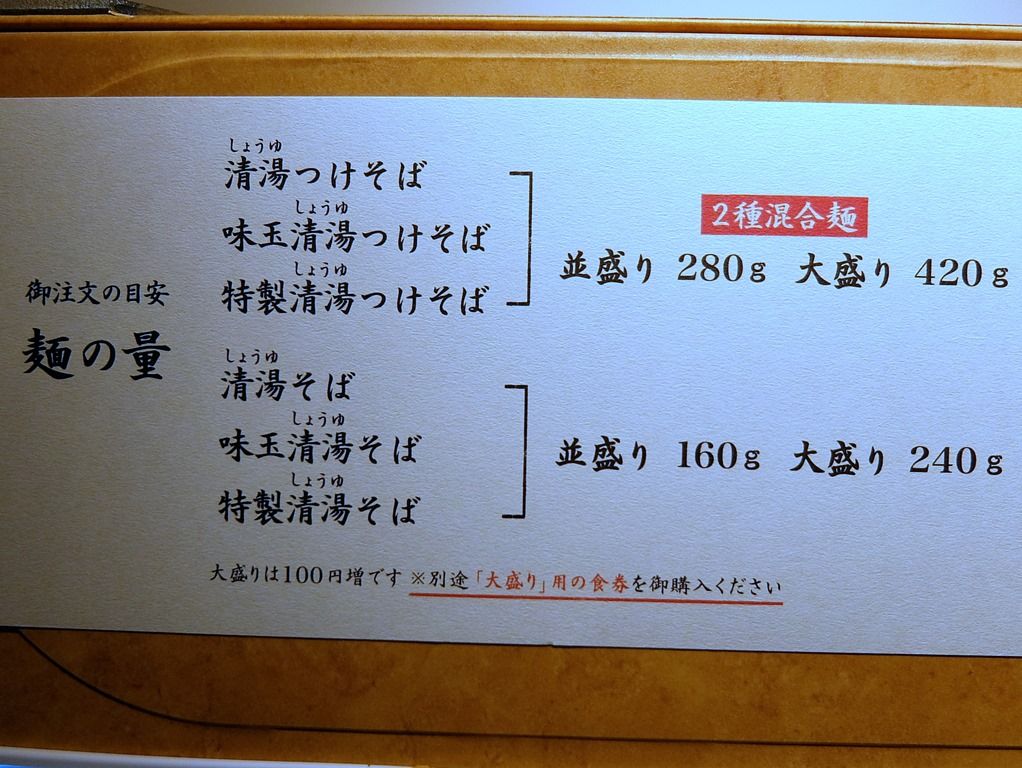 「清湯(せいゆ・チンタン)」と書いて「清湯(しょうゆ)」と読ませるのは新しいw 「つけそば」は、なんと太麺と細麺合盛りの「2種混合麺」。