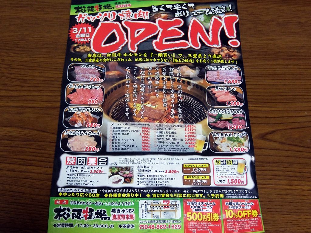 「極麺うまか」チラシの反対側は、「松阪牧場」のチラシ。こちらは、500円引き券と10%OFF券付き。