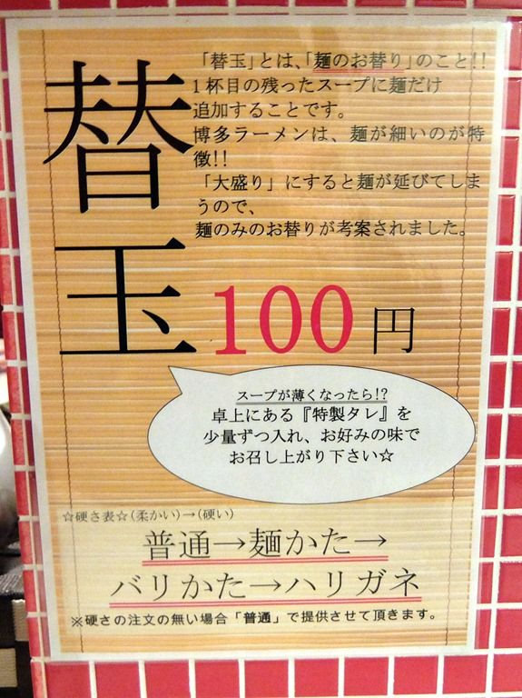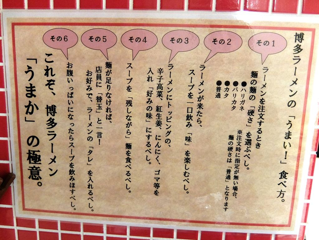 カウンターには、『博多ラーメンの「うまい!」食べ方』掲示。