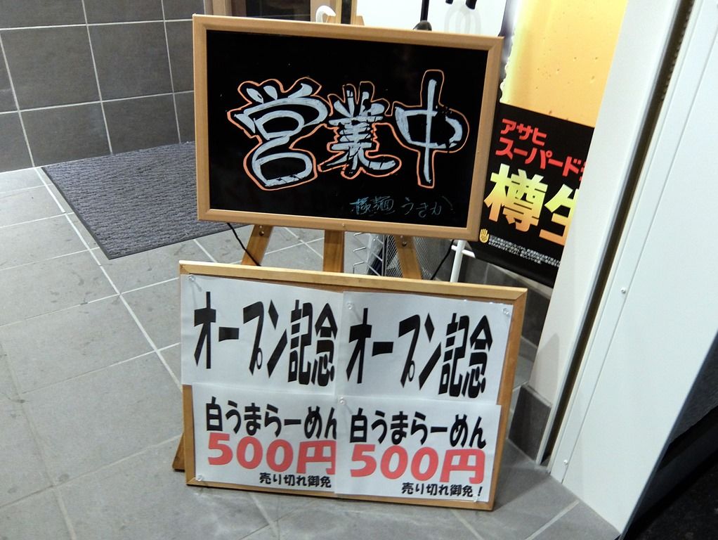 「極麺うまか」の方は、3/11~3/21までオープン記念価格として「白うまラーメン」680円→500円。