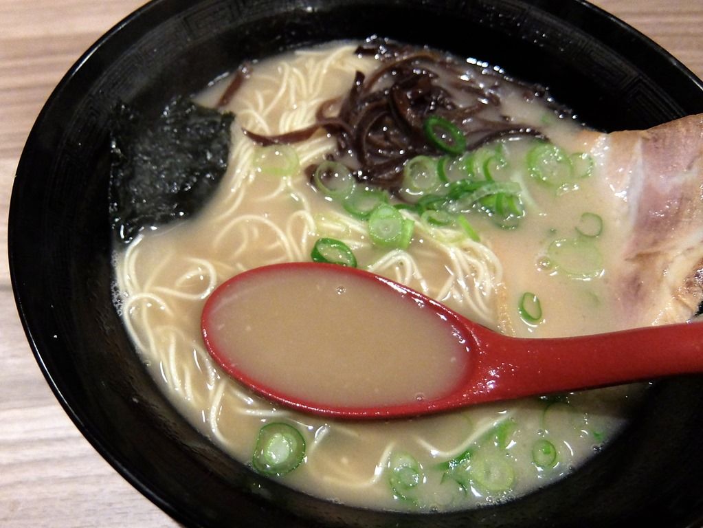 スープは、とろみのある白濁豚骨タイプ。 結論から言うと、思ってたよりずっと本格的!