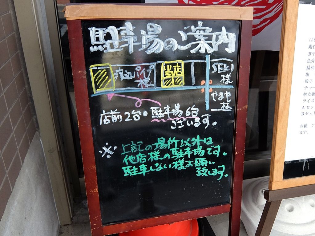 もう1箇所の駐車場は、幸手駅方面から向かうと店の手前。 「麺場 佳翔」の大きな看板が目印。