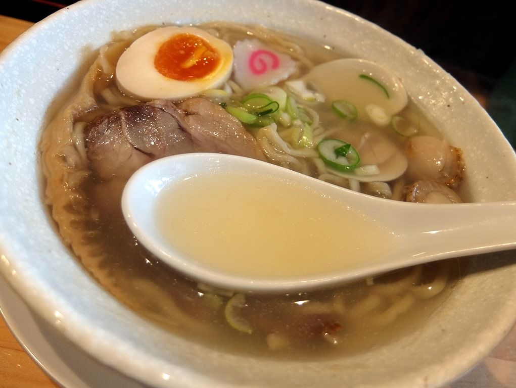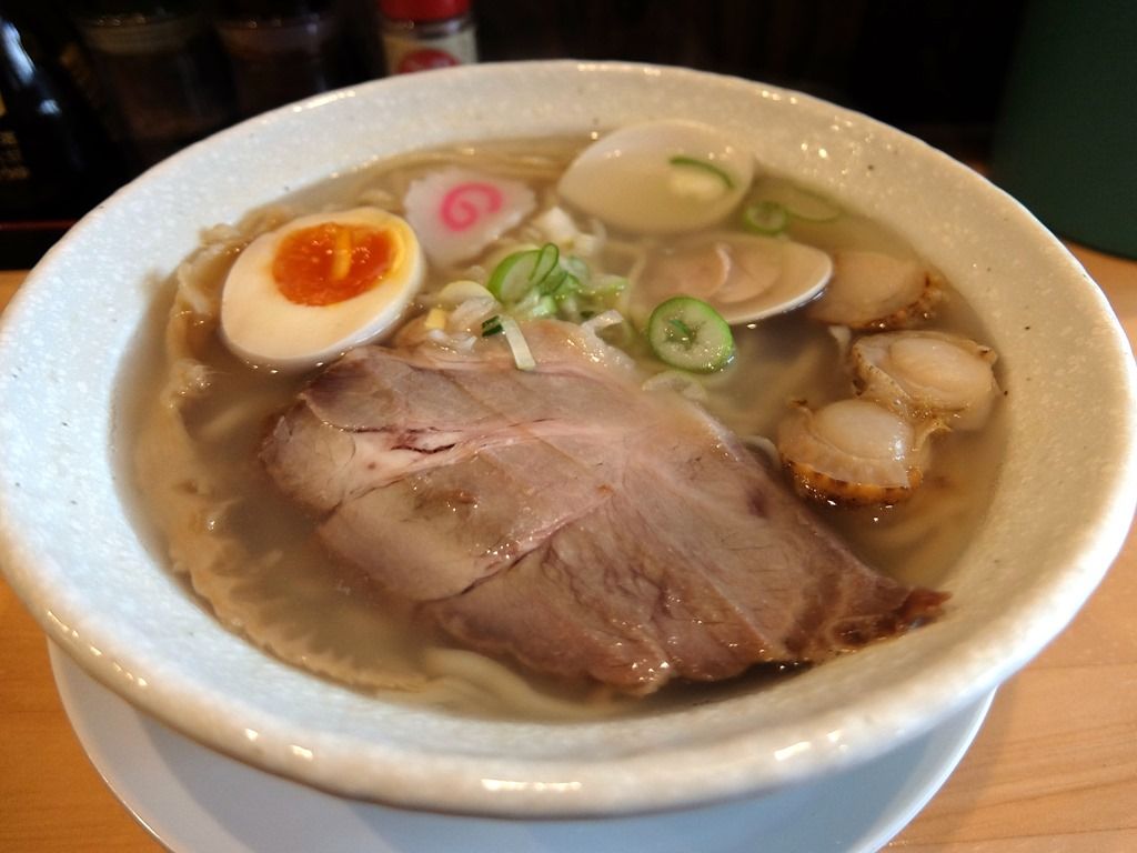 スープは、さらさらの清湯塩味。 塩カドの立ったメリハリのある味で、帆立や蛤の旨味たっぷり。