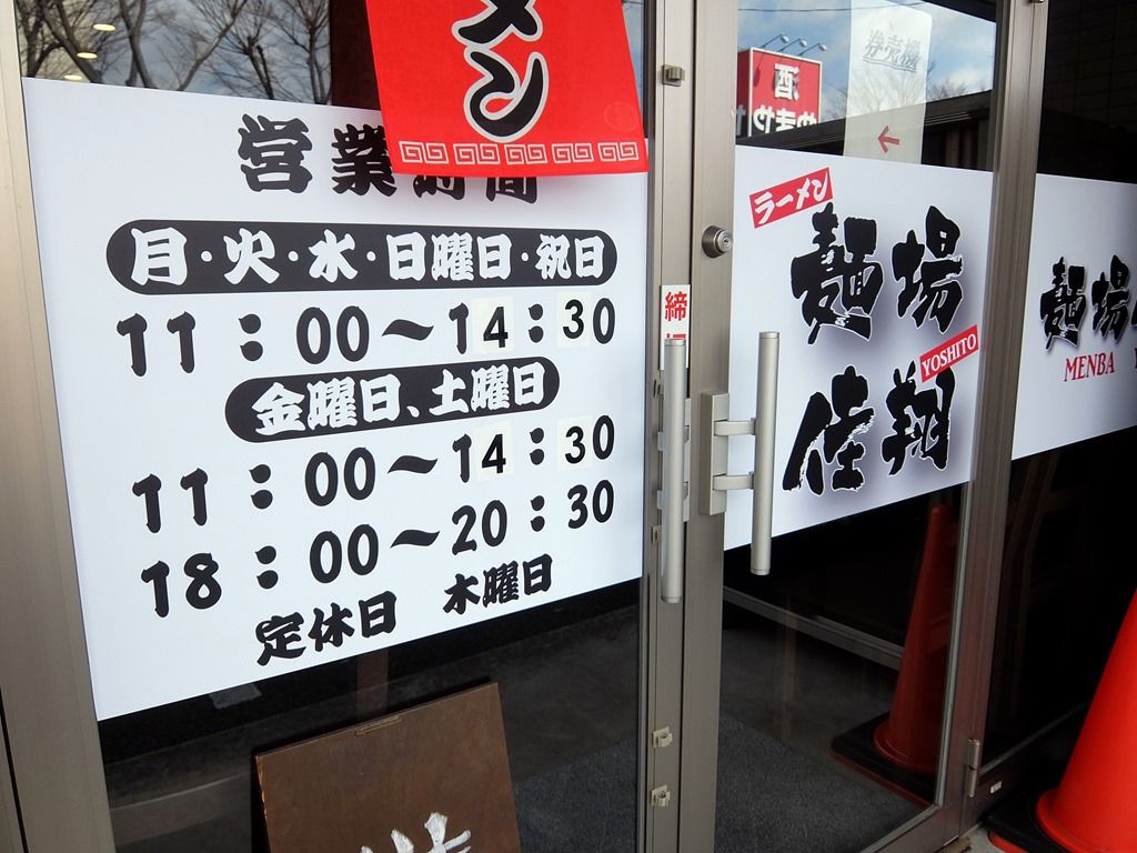 「麺場 佳翔」の大きな看板が目印。