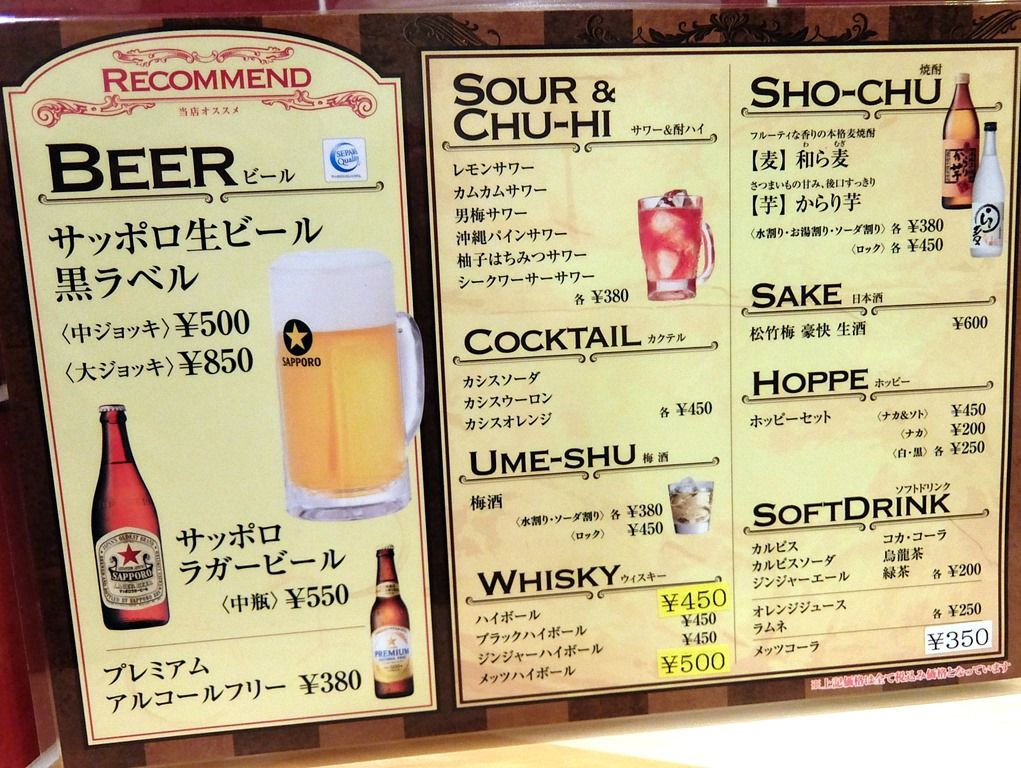 店内は、厨房前にカウンター3、壁に向かったカウンター3、4人卓x3、小上がりに6人卓x2。 20:00頃到着で、先客16、後客3。