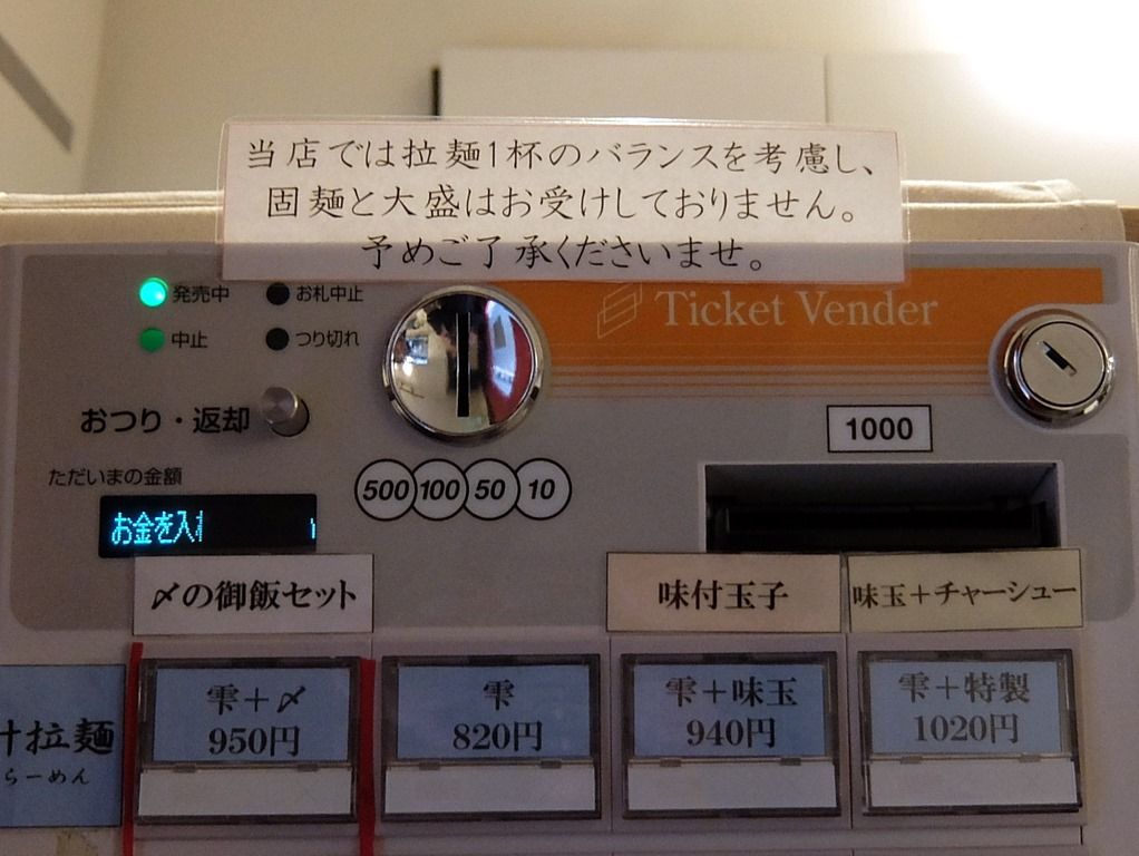 店頭開店祝花は、進化@町田の関口さんから。店内にも、進化のカップ麺がディスプレイされてました。 入店すると、まず券売機で食券購入です。主なメニューは(雫しずく)820円、和(なごみ)770円、光(ひかる)820円、他。