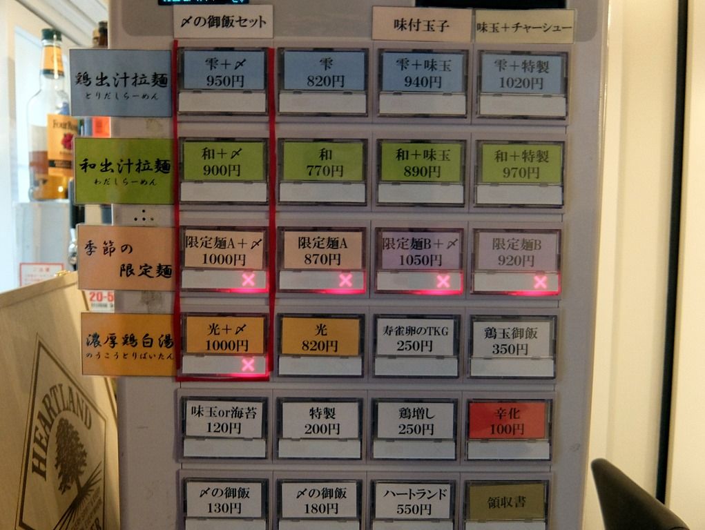 「光」は、1日15食限定の濃厚鶏白湯で訪問時X表示。