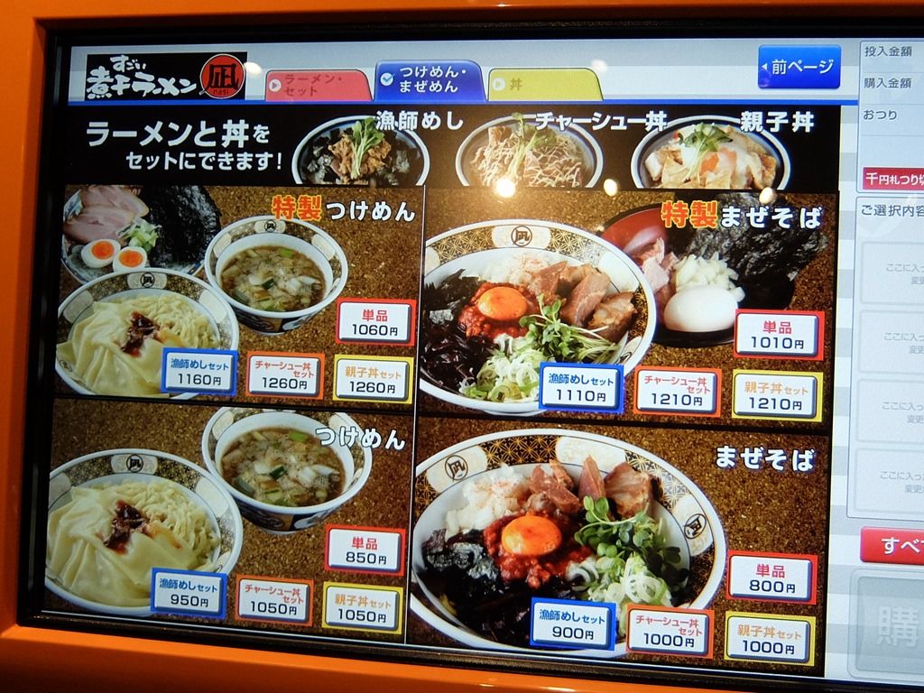 今回はもちろん「凪」をタッチ。次いで、ラーメン、つけめん・まぜそば、丼をセレクト。