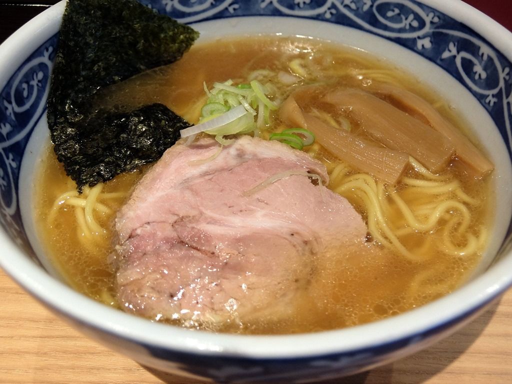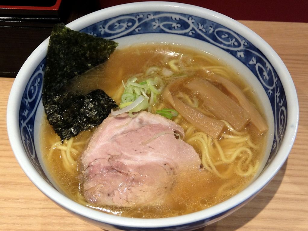 中華そば 青葉の丼と良く似た器で着丼。 具は、海苔、チャーシュー、メンマ、きざみネギ。