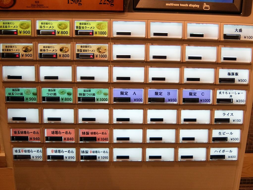 順番が来て店頭へ。入店前に、まず券売機で食券購入です。