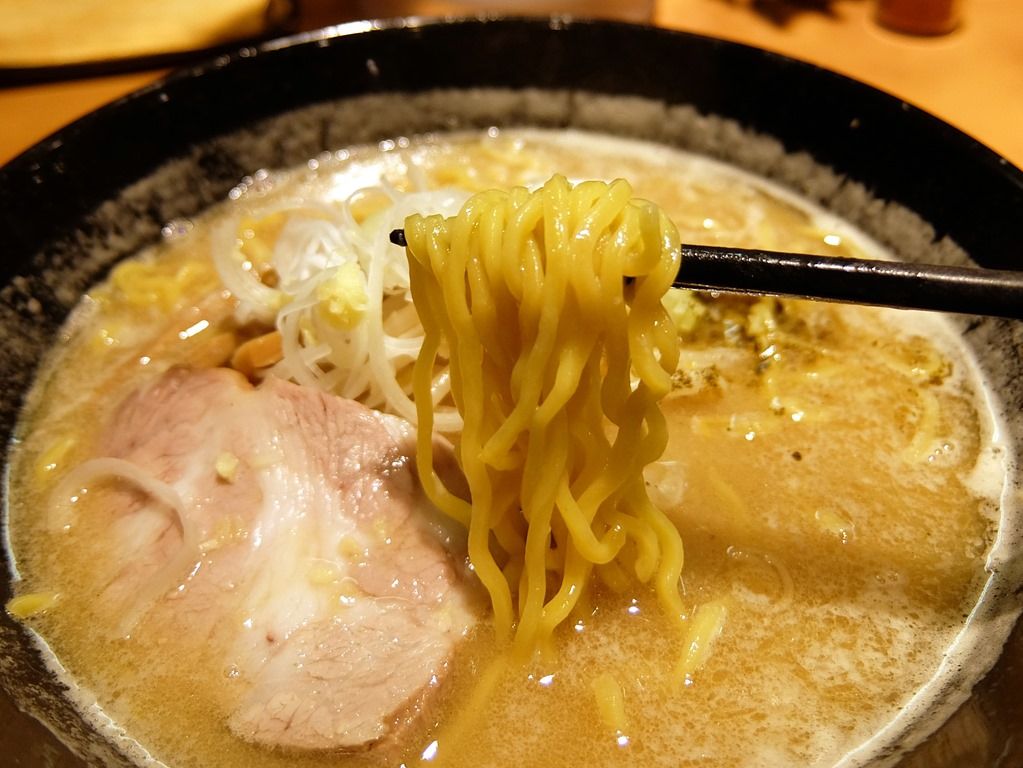 味噌ラーメンらしい麺で、雰囲気もバッチリ!もちろん美味しい!