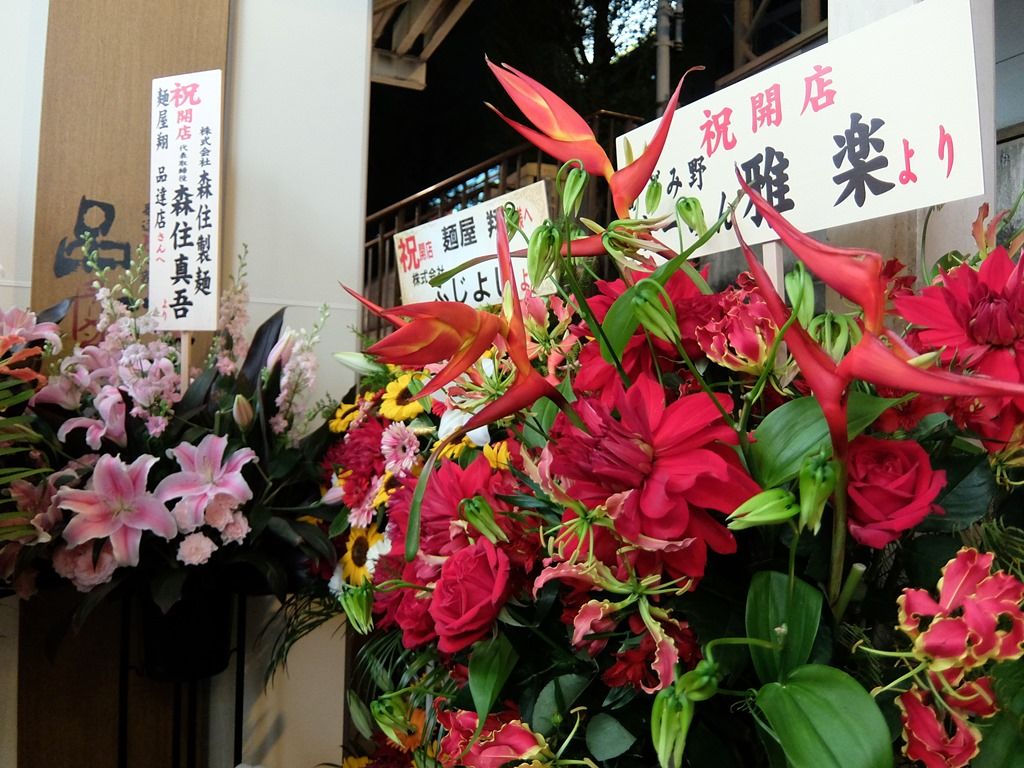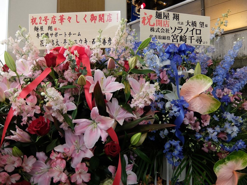 店頭には開店祝花いっぱい!気づいたところでは、ソラノイロ宮崎さん、