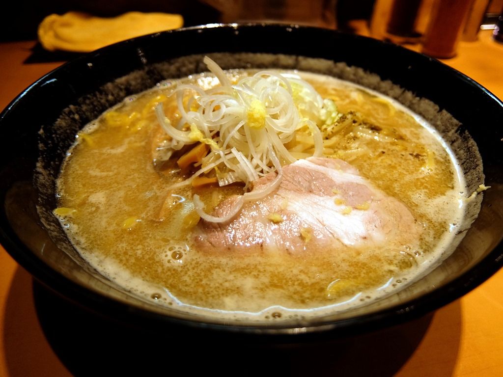 スープは、わずかにとろみのある動物性ベースの味噌味。