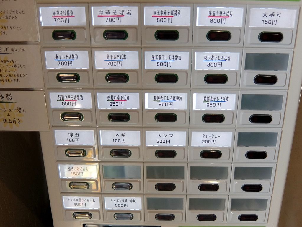 券売機横には、中華そば・煮干しそば・特製の説明掲示。 オーダーは、券売機先頭左端の「中華そば 醤油」にしました。
