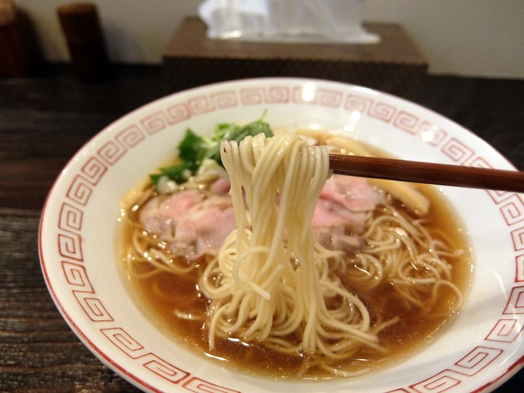 麺は、三河屋製麺製のストレート細麺。加水低めの極細麺で、あっさりスープにパッツン麺の組み合わせは異色。 ですが、低加水麺を気持ち柔めにゆで上げることでスープとの一体感が出てる感じ。いやぁ~旨い!