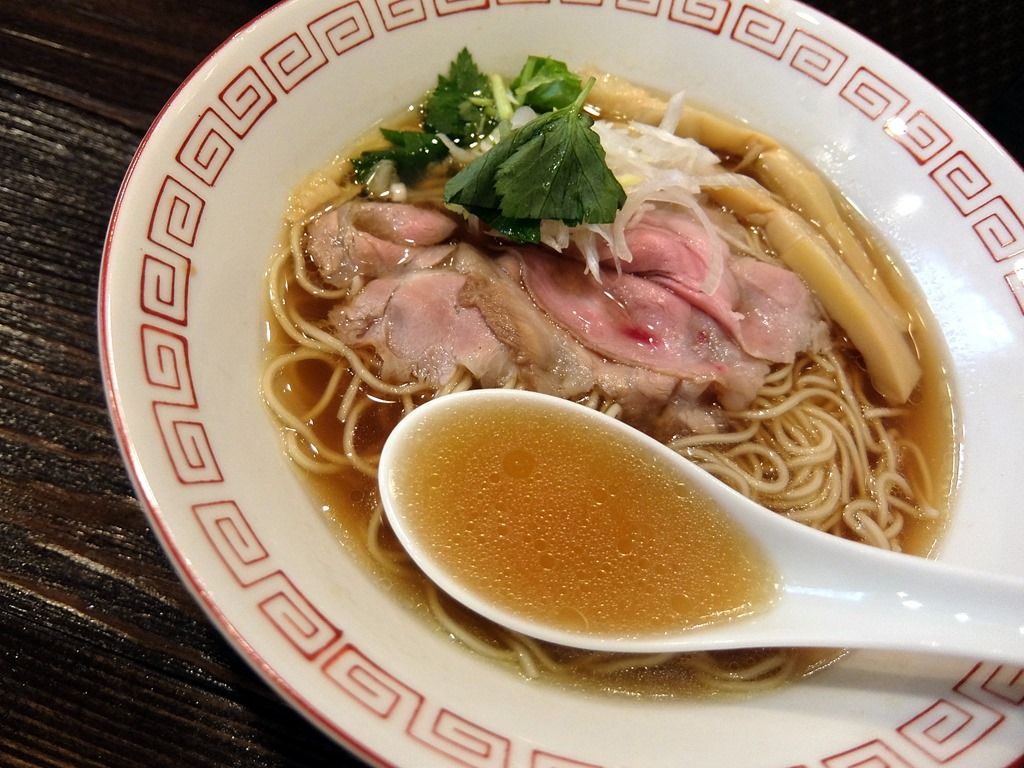 スープはさらさらの清湯醤油味。メニュー説明によると、「大山鶏のガラとモミジでとったスープに、自家製の醤油だれを合わせた」とか。
