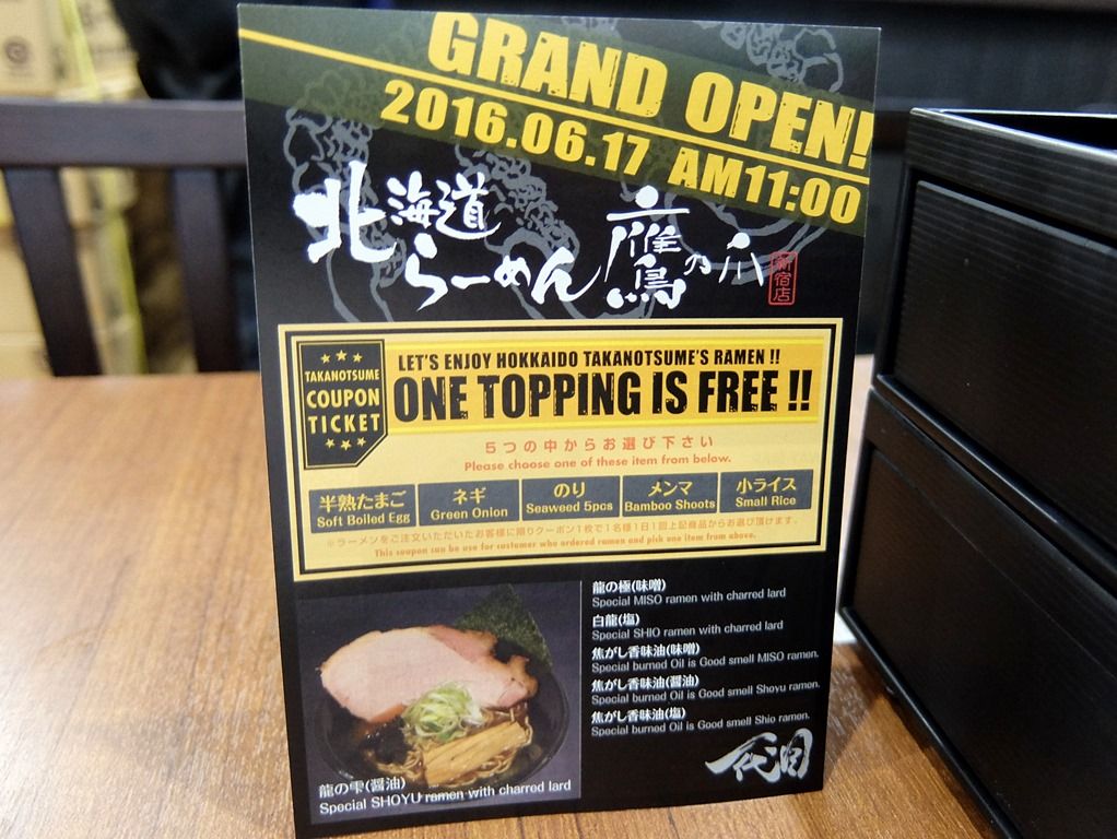 2016年6月20日、代々木の新店「北海道らーめん 鷹の爪 新宿店」へ。