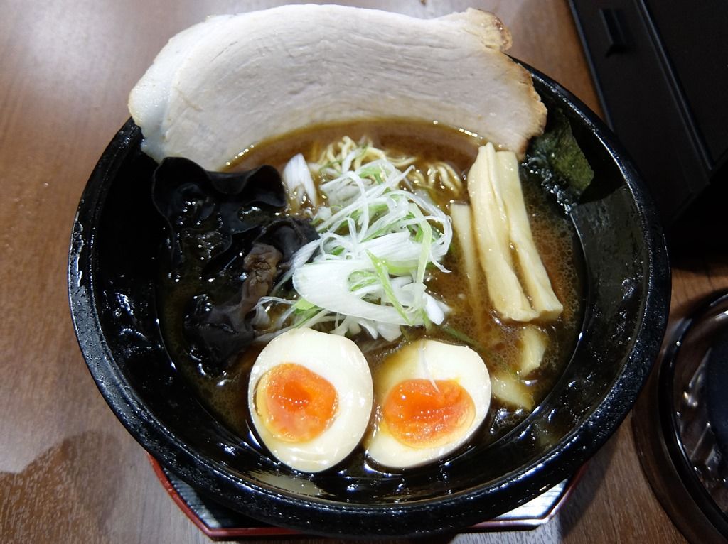具は、チャーシュー、メンマ、キクラゲ、笹切りネギ、クーポンサービスの味玉。