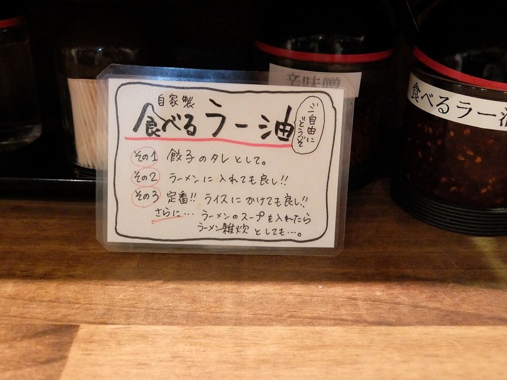 スープが単調で途中で飽きるので、卓上調味料で味変。辛味噌は普通。食べるラー油は食材に海老が使われているらしく、しっかりとエビ風味がしてとても良かったです!