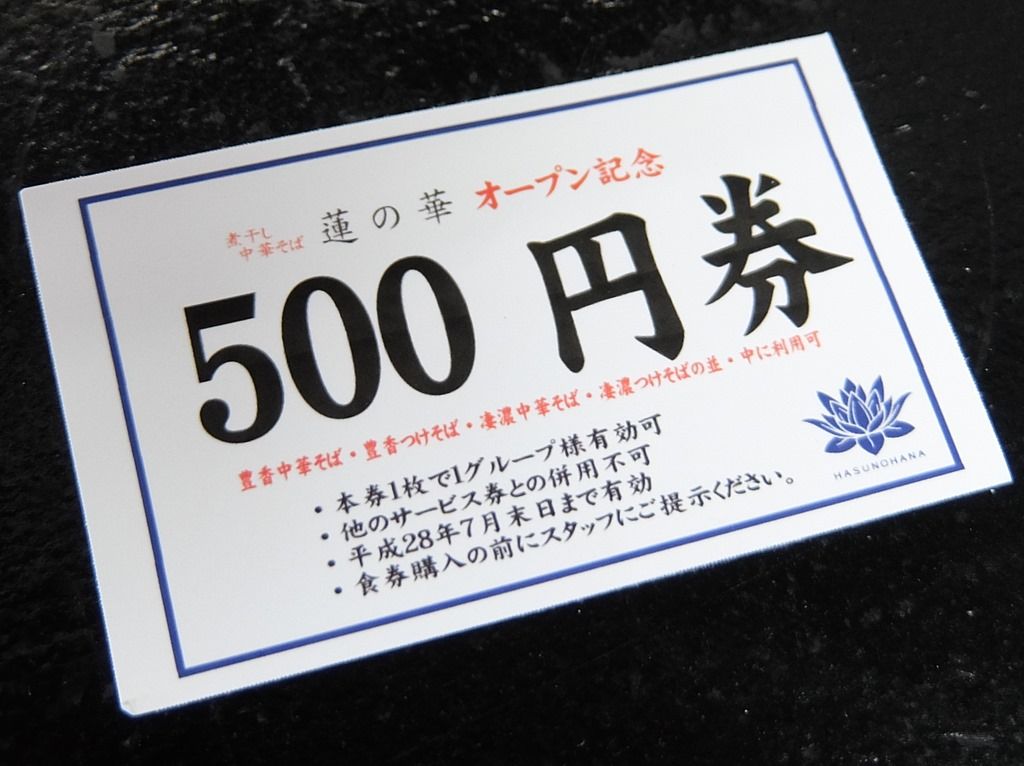 注文品を待ってると、次回使える500円券をいただきました。