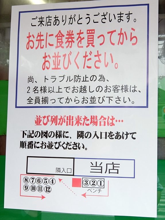 開店5分前に到着。シャッター待ち6名に接続。店頭には、並び方の説明が貼ってあります。