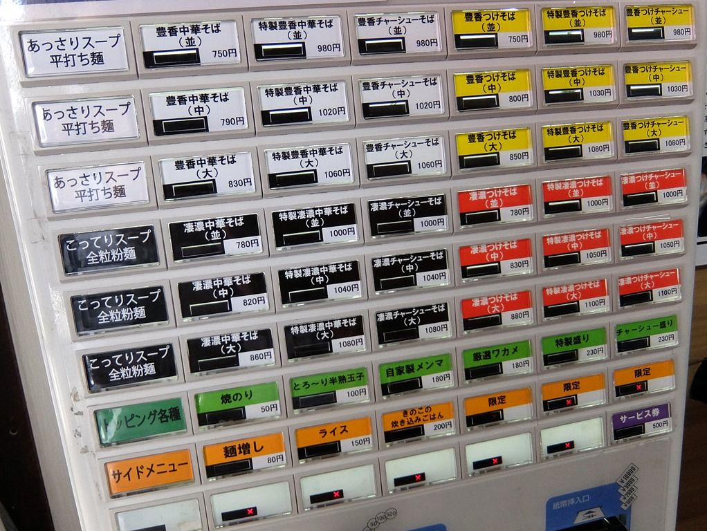 こうじ系らしく麺量表示は明快。オーダーは、券売機先頭左端の「豊香中華そば(並)」にしました。